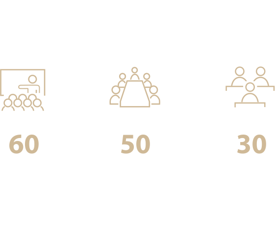 Sala bardzo elegancka z dostępem do światła dziennego. Idealna do wszelkiego typu posiedzeń. Powierzchnia sali 60 m2 Wyposażenie • WiFi • flipchart • ekran • projektor